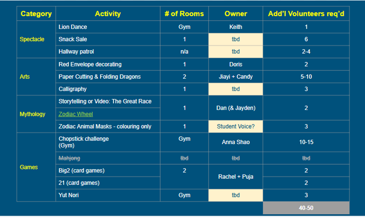 | Lunar New Year | Lunar New Year Event – Planning Discussion